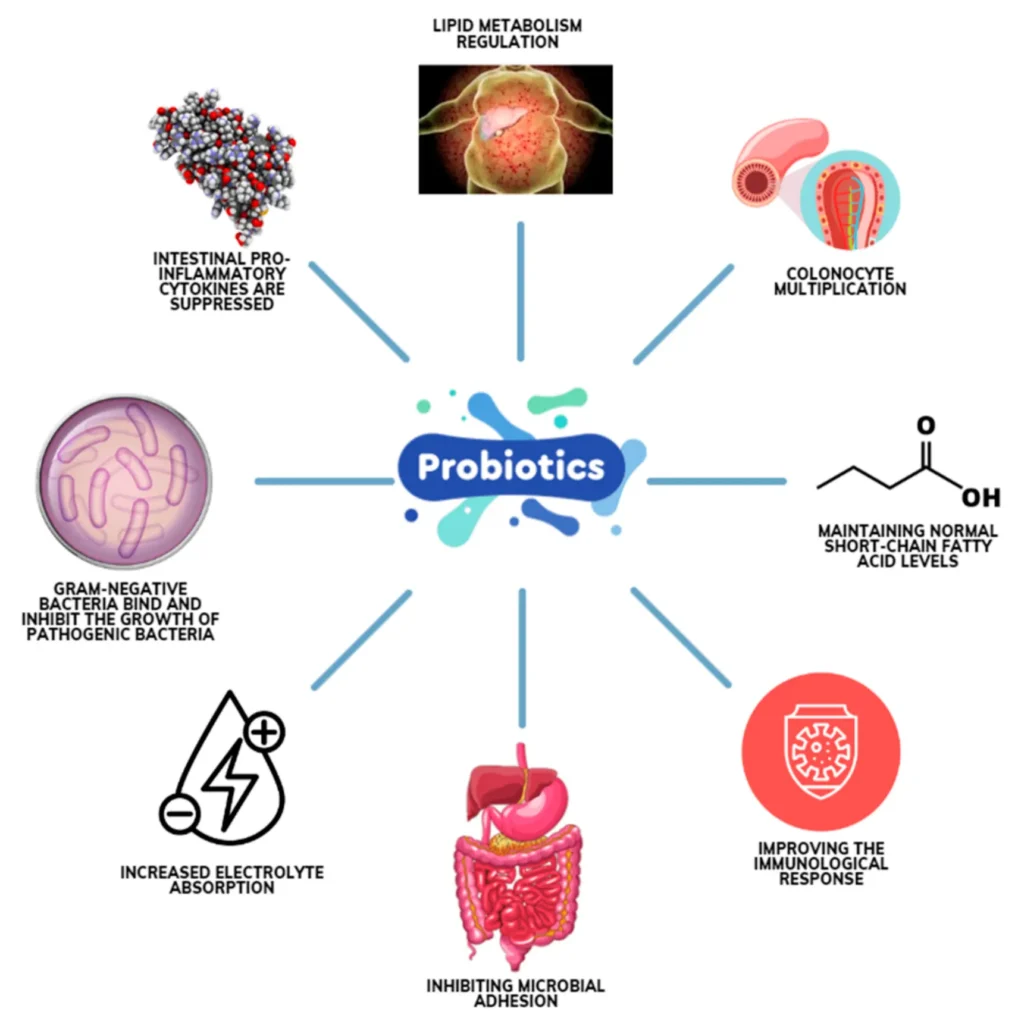La Saccharomyces boulardii agit comme une levure vivante capable de limiter la prolifération de certains micro-organismes responsables de troubles digestifs. Les probiotiques, eux, apportent différentes bactéries bénéfiques comme les Lactobacillus ou les Bifidobacterium qui participent à l’équilibre intestinal.